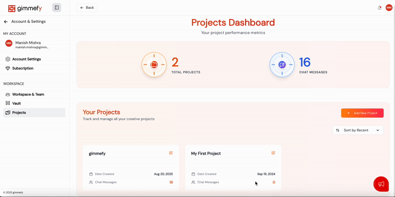 Overview The Project Page in gimmefy is where you organize all your creative work. Projects act as containers for your ideas, content, and brand-specific assets—making it easier to manage campaigns, clients, or personal initiatives in one place. ...