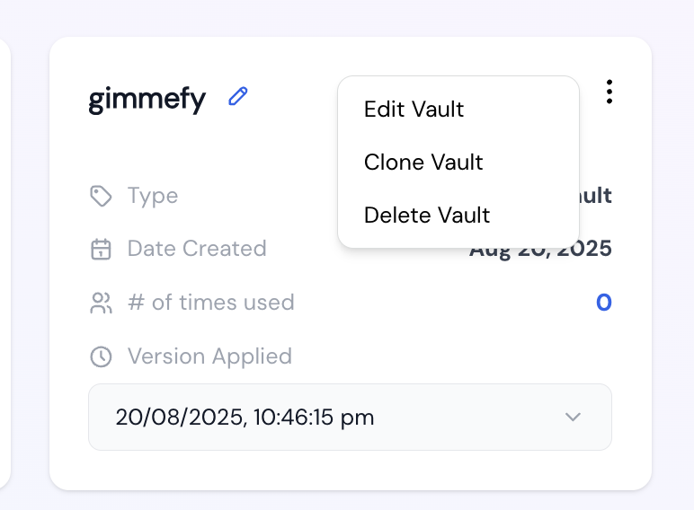 This will open a pop up menu with options to Edit Vault or Delete Vault.