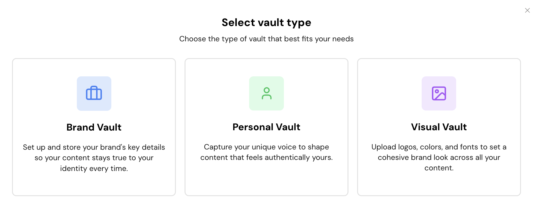 - Start creating—your Vault powers every piece of content